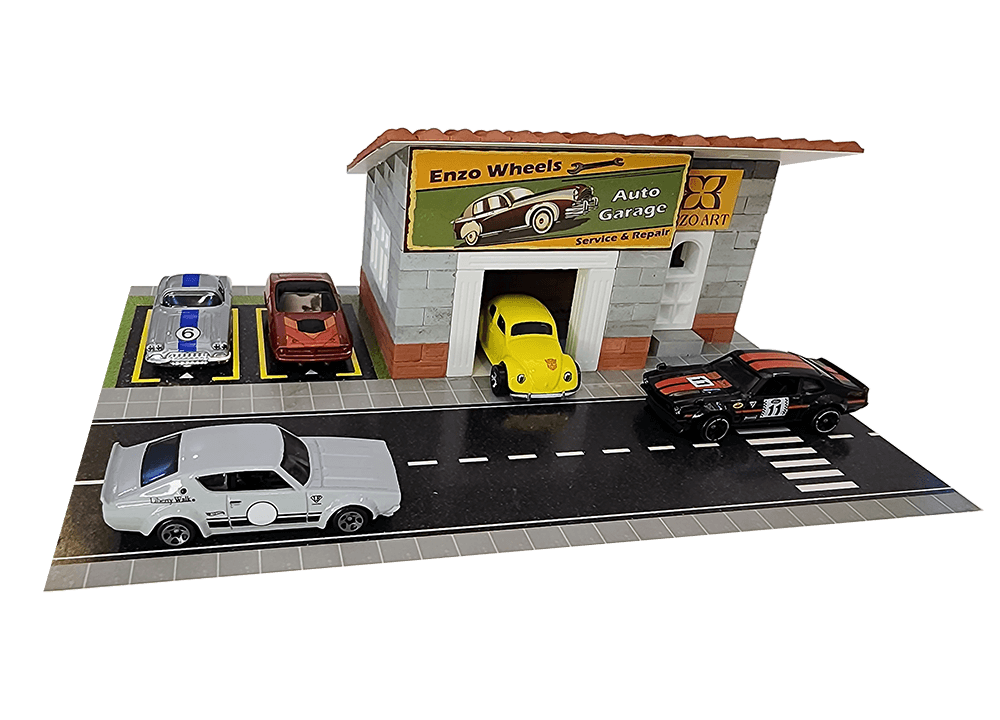 Enzo Wheels Oto Garaj, gerçek minyatür tuğlalardan yapılmış, Enzo Art Group tarafından özel olarak tasarlanıp üretilmiş ,eğitici ve eğlenceli bir settir.