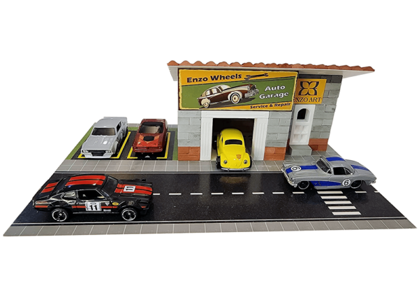 Enzo Wheels Auto Garage’ın boyutları, 1/64 ölçekli metal ve koleksiyon arabaları baz alınarak tasarlanmış ve üretilmiştir. Model ve ölçekli araba koleksiyoncuları için mükemmel bir seçenektir.